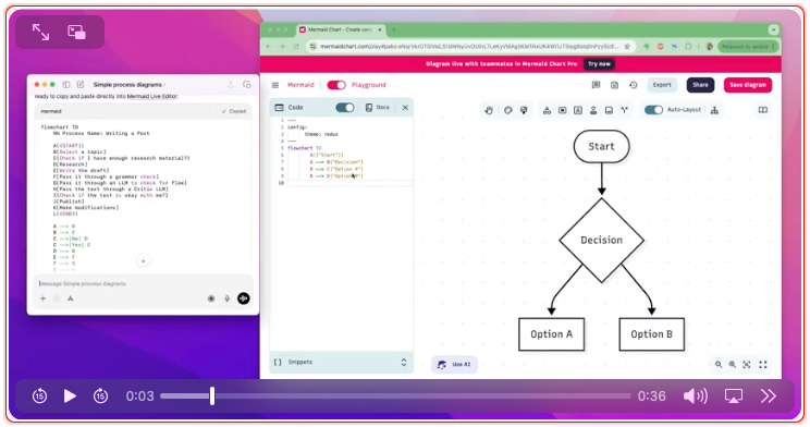 My friend Mario Kranjec introduced me to Mermaid Chart — a tool that lets you easily build many types of diagrams using standardized, markdown-style code (and even AI assistance).
